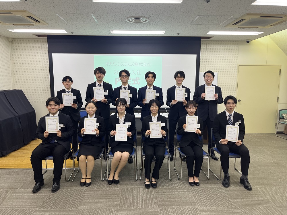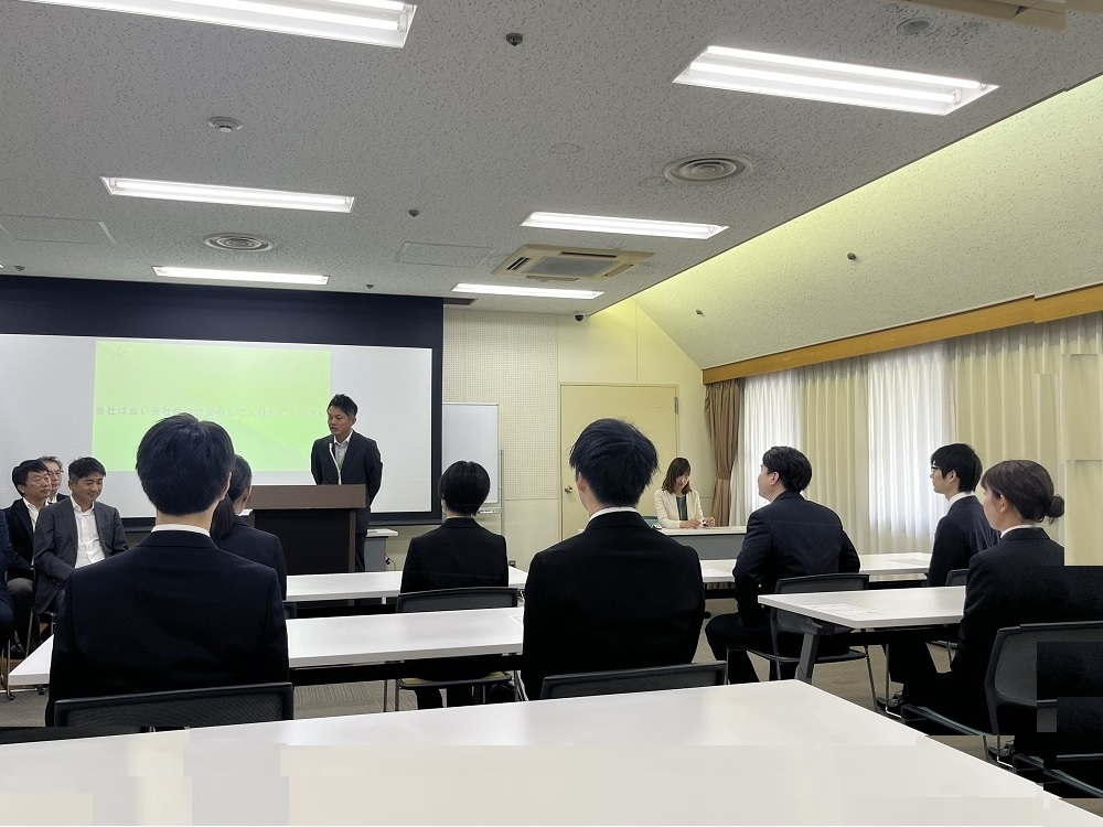 2023年10月2日(月)、2024年入社予定内定者の内定式を執り行いました。今年も全国からご参加いただきました。菅社長からの証書授与の際には皆さん緊張した面持ちでしたが、一人ひとりから自己紹介をしてもらい、これから社会人となる彼らの前向きな姿勢を感じることができました。中嶋取締役からは、「一日でも早く貢献しようと焦らず、働くことを楽しみながら取り組んでほしい」という激励の言葉がありました。